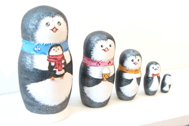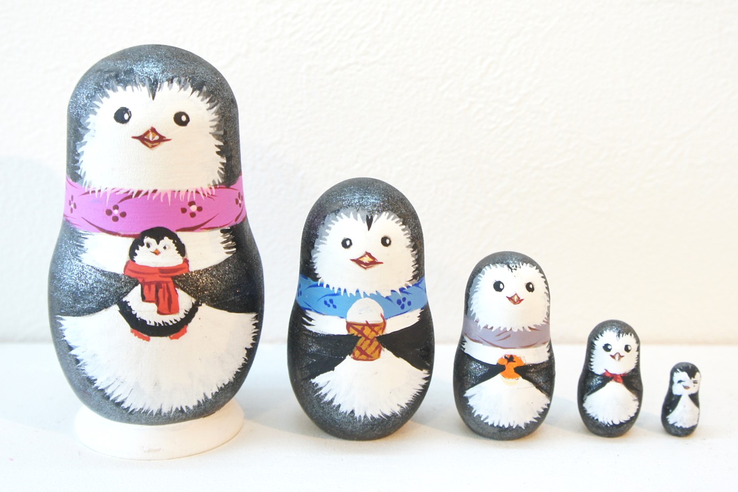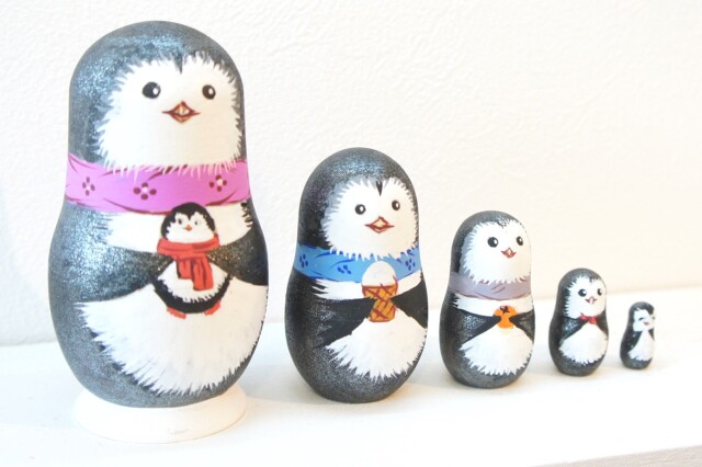 ペンギン好きの方におすすめのほのぼのとしたマトリョーシカです。