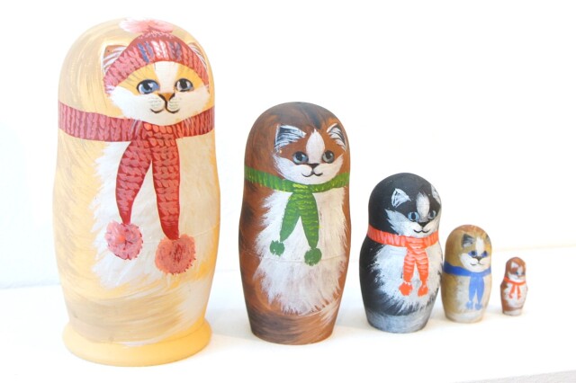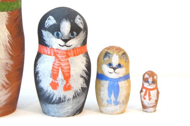 ネコたちの表情がかわいいほのぼのとしたマトリョーシカです。