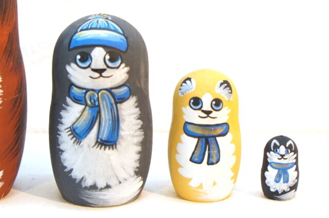 ネコたちの表情がかわいいほのぼのとしたマトリョーシカです。