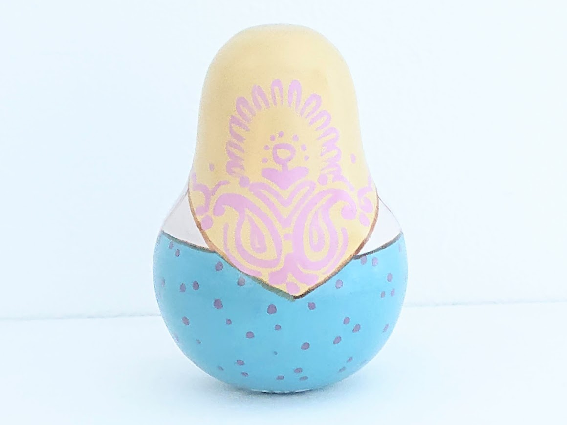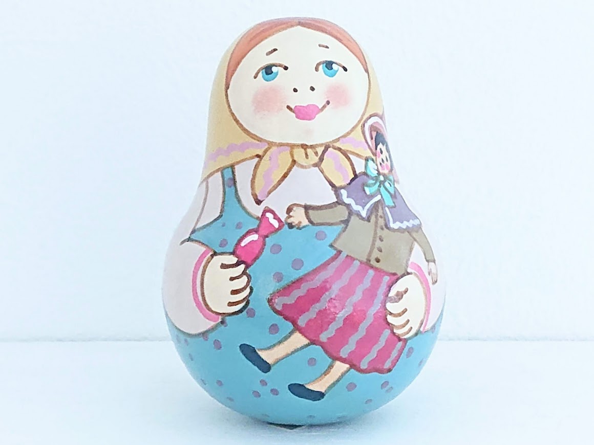 揺らすとカランコロンといい音色がするドゥビニッチさんのペイント・ネヴァリャーシカ(起き上がりこぼし)<人形とキャンディー>です。