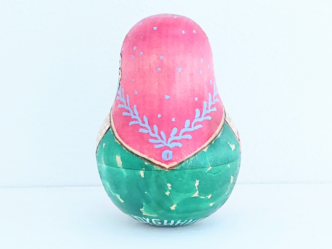 揺らすとカランコロンといい音色がする、ドゥビニッチさんのウッドバーニング・ネヴァリャーシカ(起き上がりこぼし)<ネコとネズミのクリスマス> です。