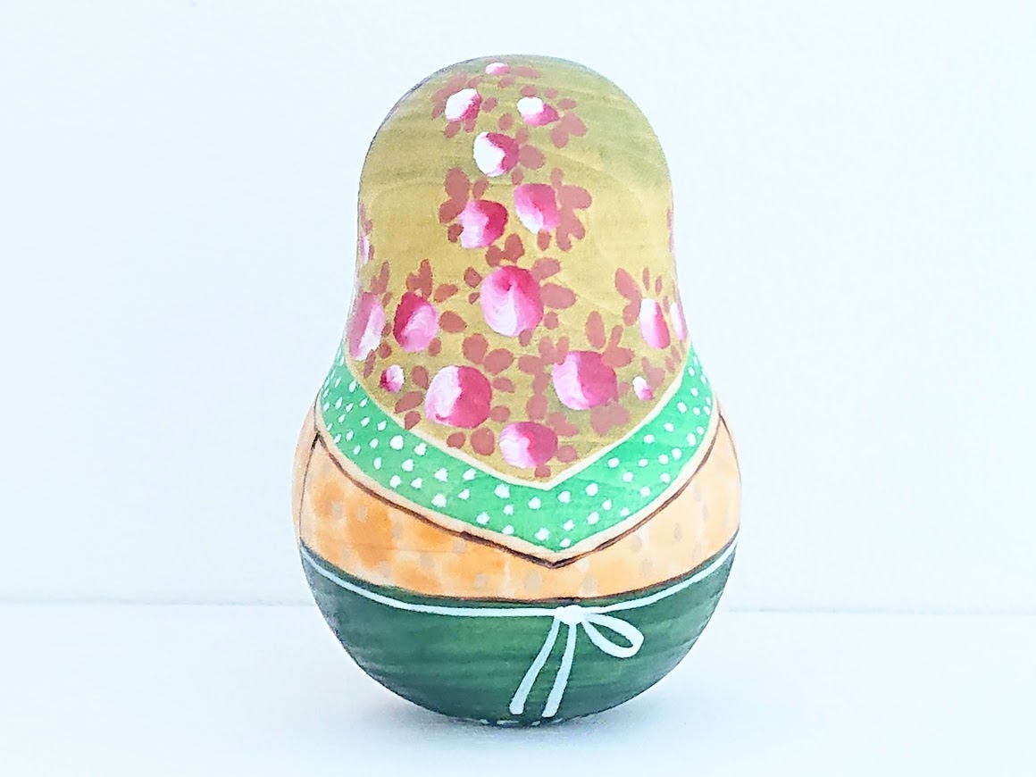 揺らすとカランコロンといい音色がする、ドゥビニッチさんのウッドバーニング・ネヴァリャーシカ(起き上がりこぼし)<リンゴ> です。