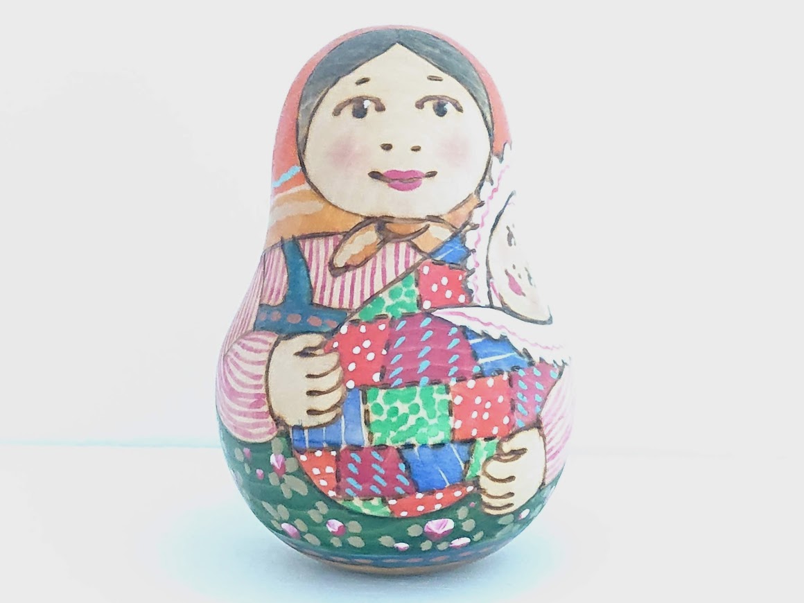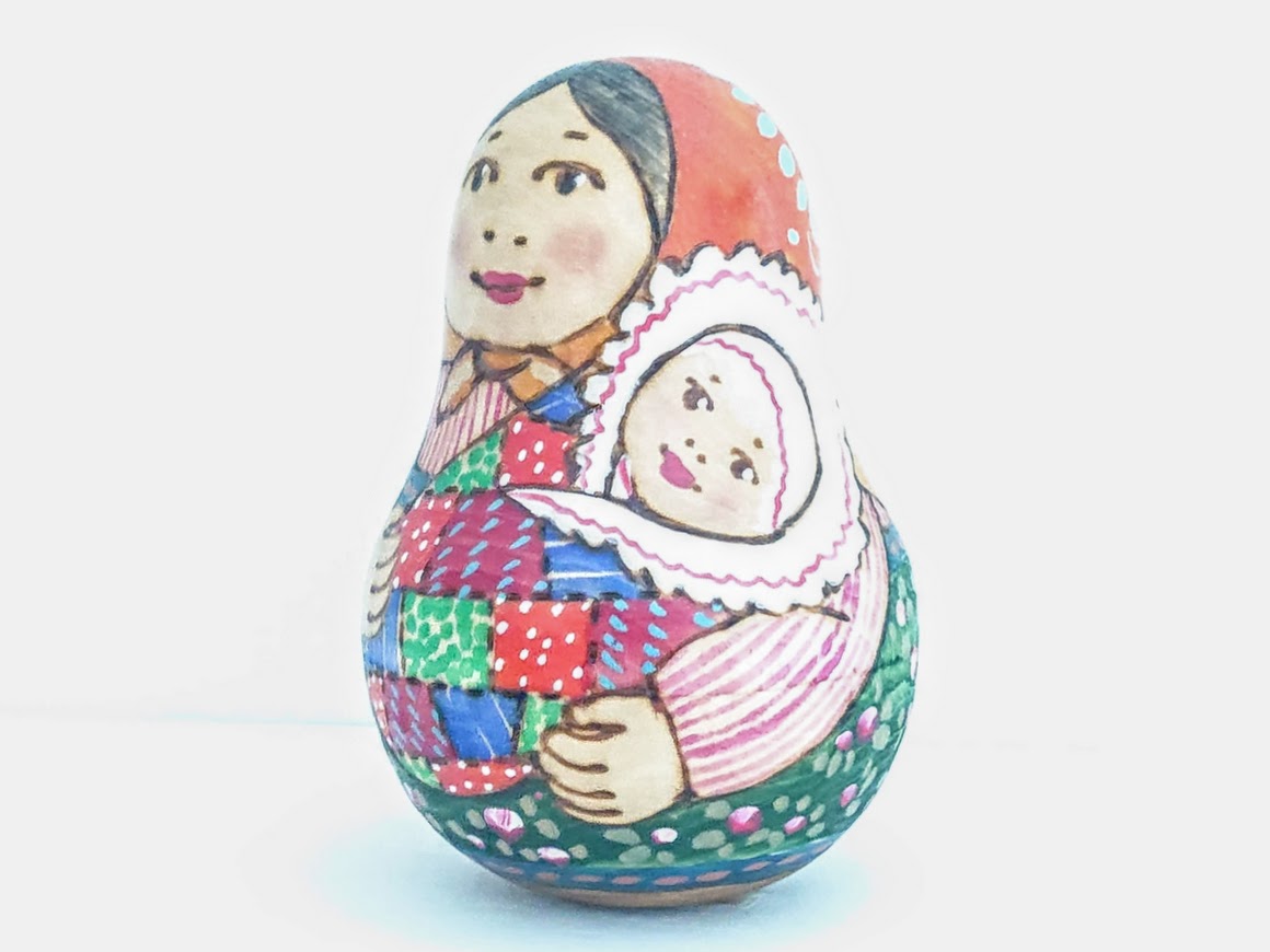 揺らすとカランコロンといい音色がする、ドゥビニッチさんのウッドバーニング・ネヴァリャーシカ(起き上がりこぼし)<赤ちゃん>です。
