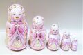 両手を合わせて祈りを捧げる、フィラートヴァさんの「祈り」キラキラ!スリムマトリョーシカ 5ピース <ピンク>です。