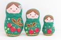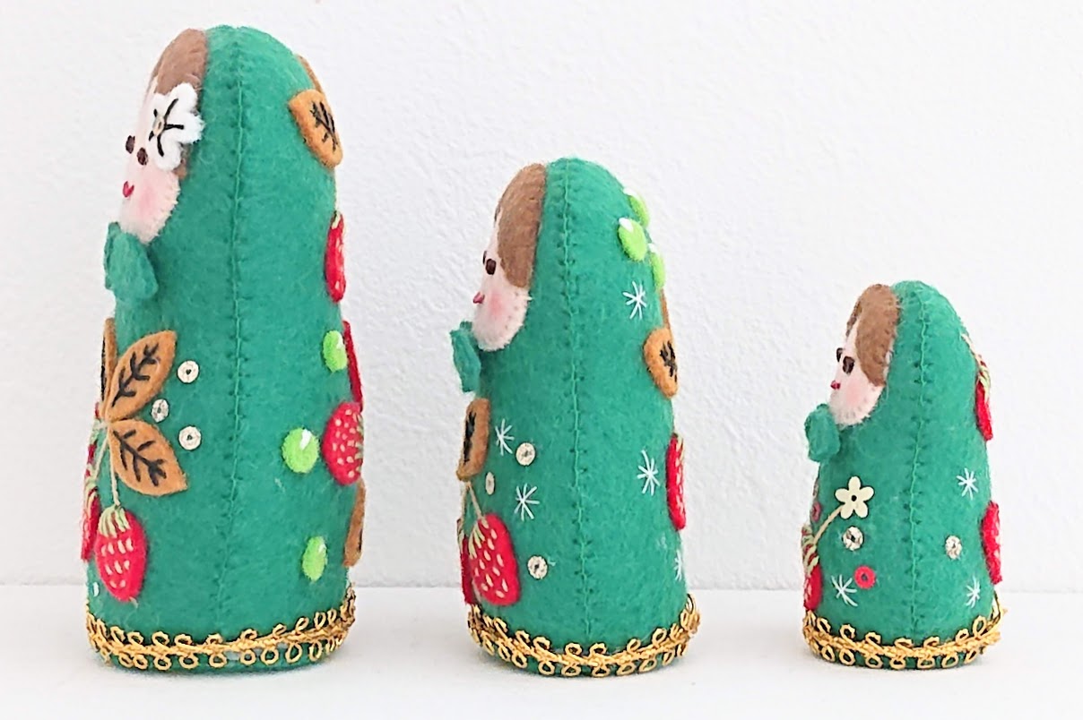 シートフエルト・マトリョーシカ作家、北向邦子(きたむき くにこ)さんのかわいいフエルトマトリョーシカ <緑のホフロマ> 3個セットです。