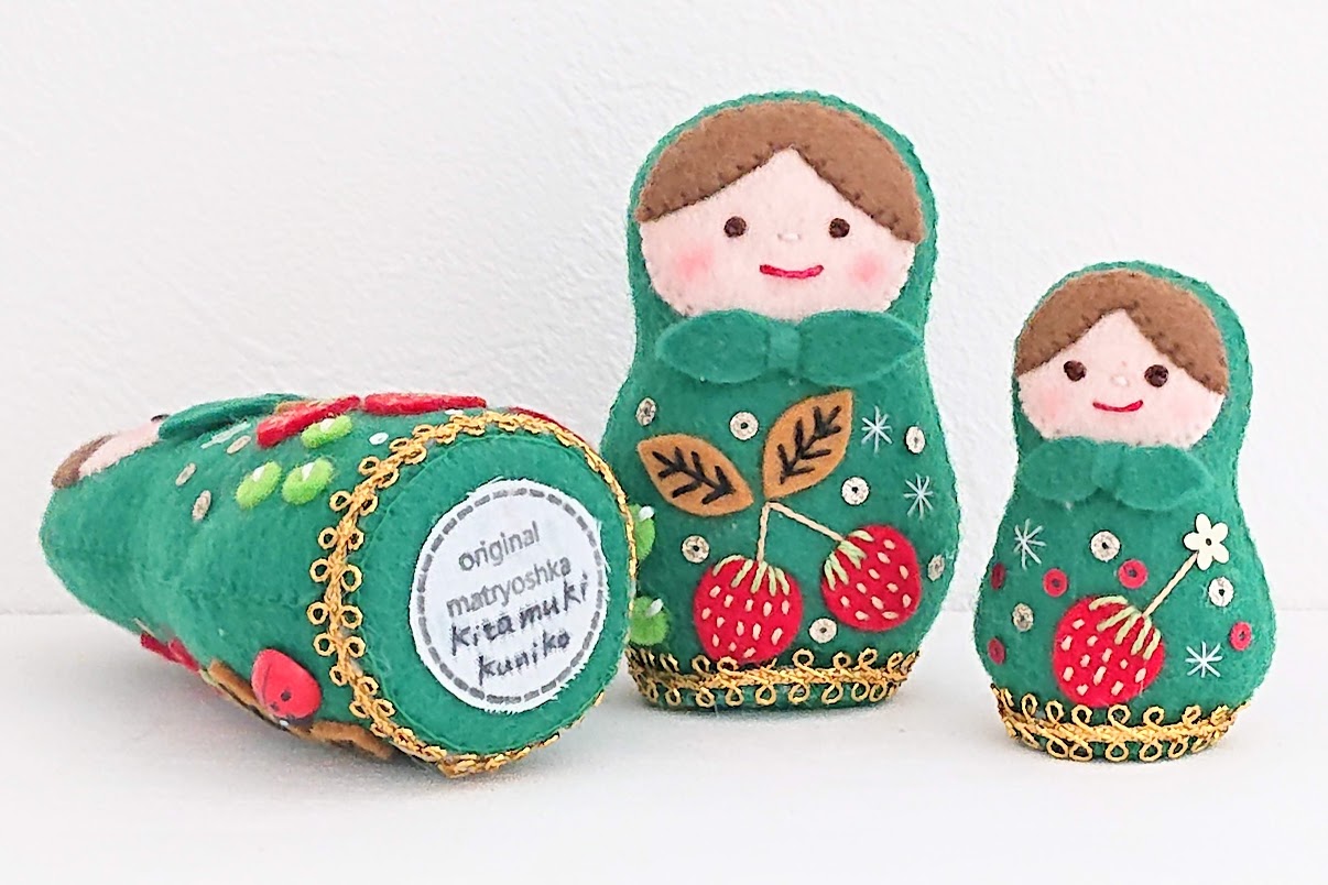 北向さんは「フェルトのちいさなマトリョーシカとマスコット」や、「マトリョーシカ・ものがたり 」など、ご自身の本も出版されている作家さん!ご縁あって、リャビーナで作品を扱わせていただいています。
