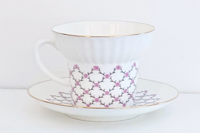 インペリアル・ポーセレンのティーカップ&ソーサー、ローズ・ネット "Розовая сетка"です。