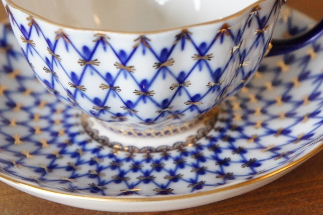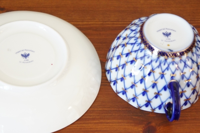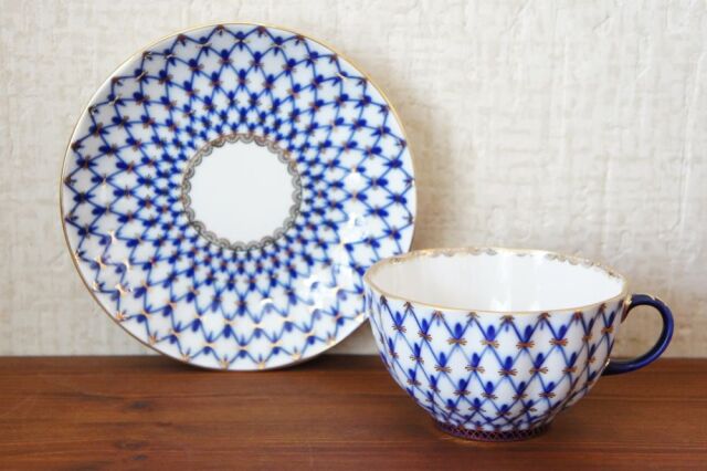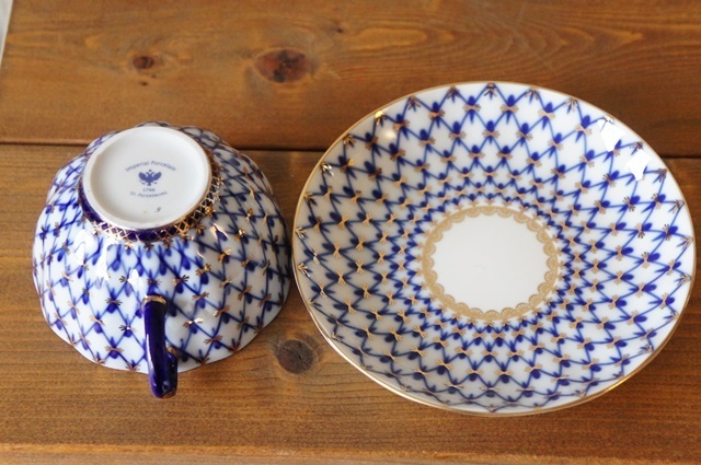 インペリアル・ポーセレンのコバルトネット "Кобальтовая сетка" ティーカップ&ソーサーです。