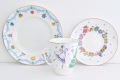このシリーズはカップ&ソーサーに、ケーキプレートがついた三点セット。バレエの一場面を思い起こさせるような美しい絵柄は手描きで彩られ、とても素晴らしいものです。
