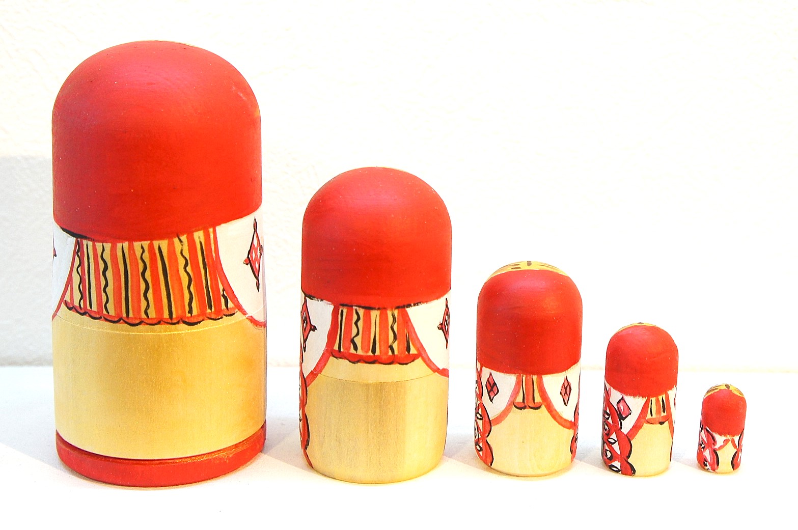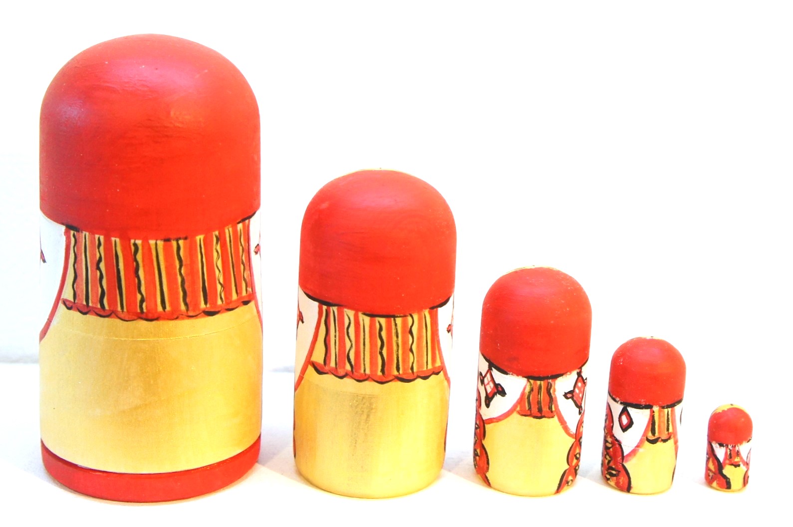 マルンコーヴァ作 赤ずきんちゃんマトリョーシカ<モスクワ> 5ピースです。表情がなんとも癒し系で、見ていると思わず笑顔になってしまいます。
