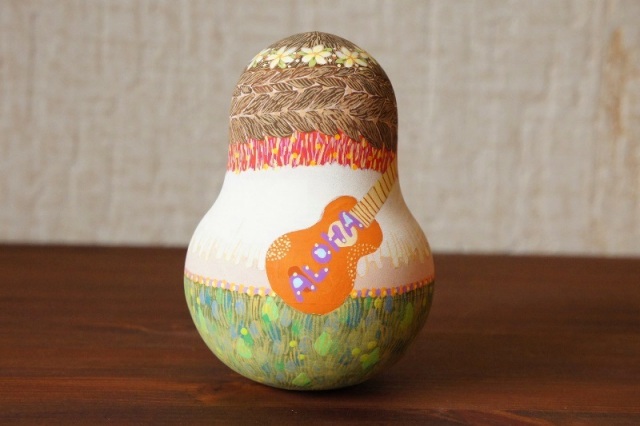 女の子のかわいい表情がたまらない、日本人マトリョーシカ作家のmica(ミカ)さんが作った世界の民族衣装 ひょうたん型ネヴァリャーシカ(起き上がりこぼし) <ハワイ>です。