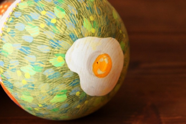 ネヴァリャーシカの底にもご注目!なんとおいしそうな目玉焼きが描かれています。そういえばハワイ料理の「ロコモコ」には目玉焼きがかかせないですよね?