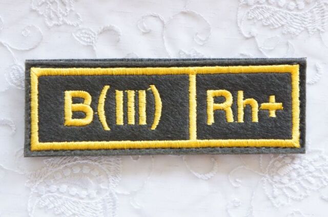 ロシアの血液型表記は日本でもおなじみのA・B・O・AB型ではなく、O型=1型、A型=2型、B型=3型、AB型=4型という表記方法を使っています。このパッチは2つの表記法で血液型が刺繍され、さらにRh±(アールエイチ・プラスマイナス)も刺繍されています。