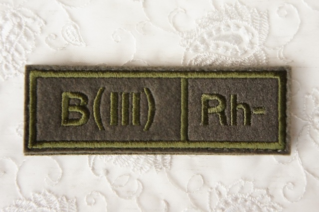 B型はロシアでタイプⅢです。B型Rh+(プラス)の戦地用ワッペンです。オリーブ地にオリーブ色の刺繍です。