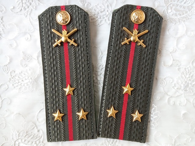 尉官の肩章は赤色のラインが1本、階級を表す星は小さいサイズで、佐官の肩章は赤色のラインが2本、大きな星印がついています。