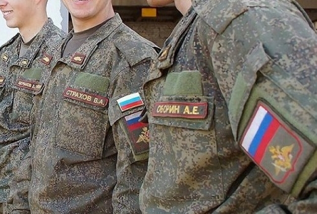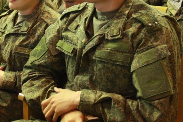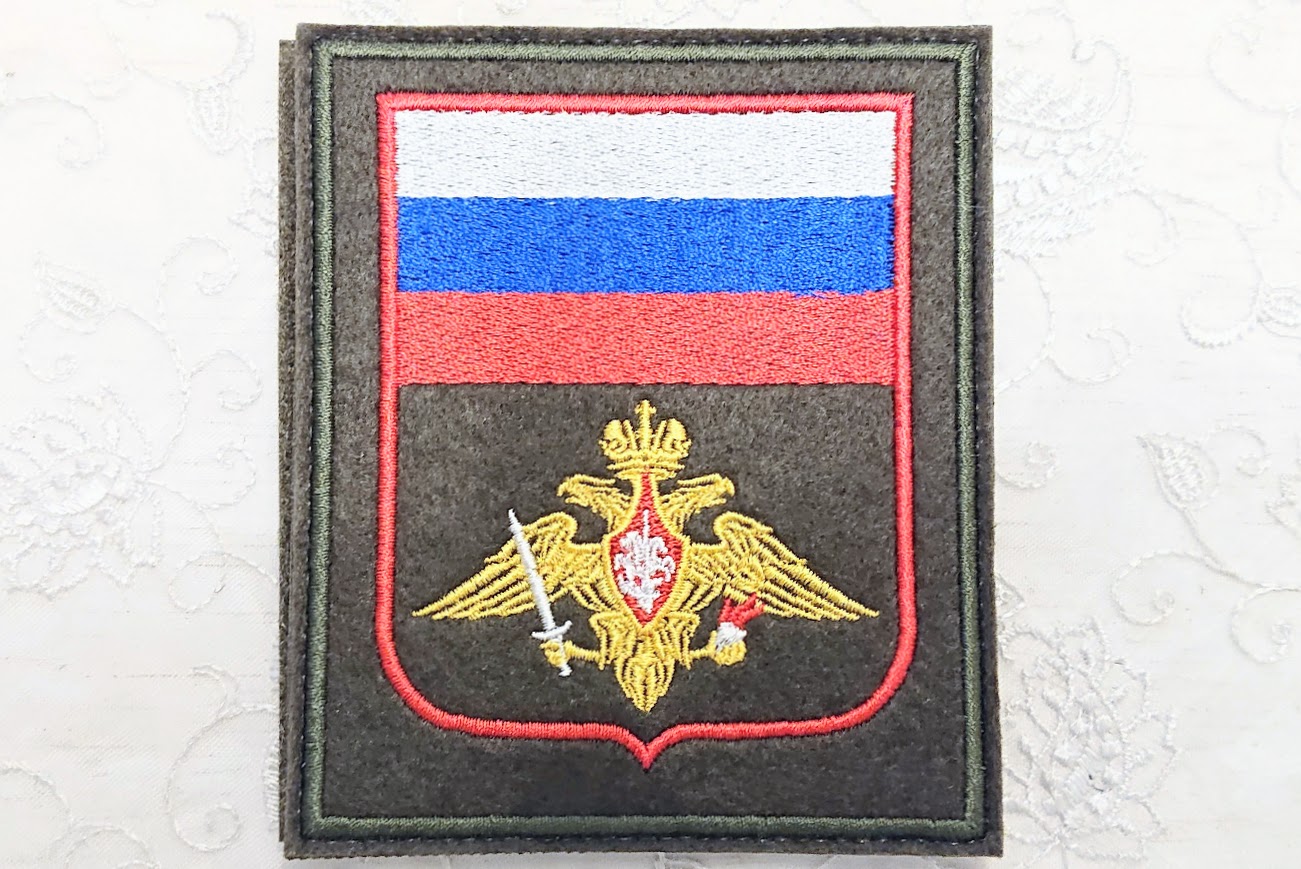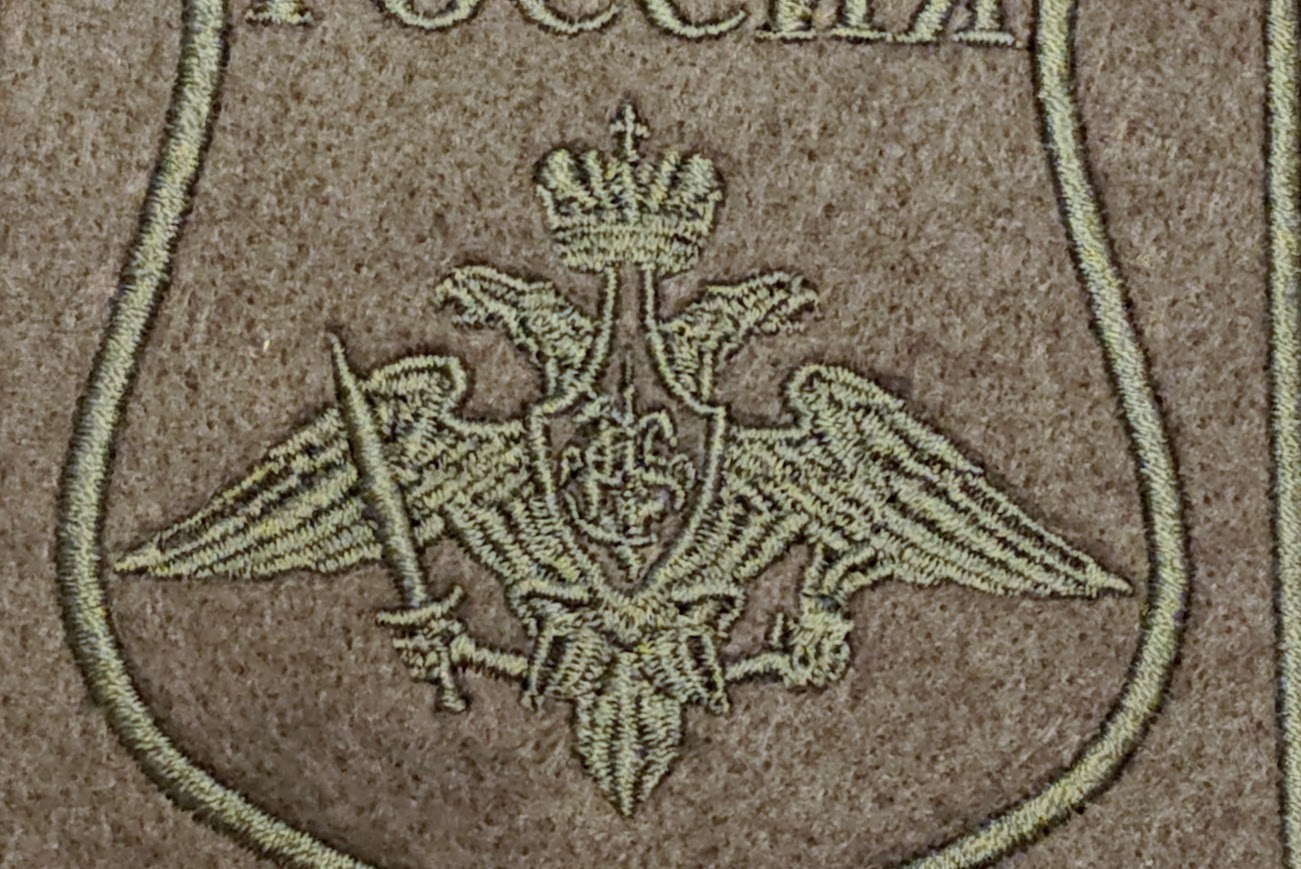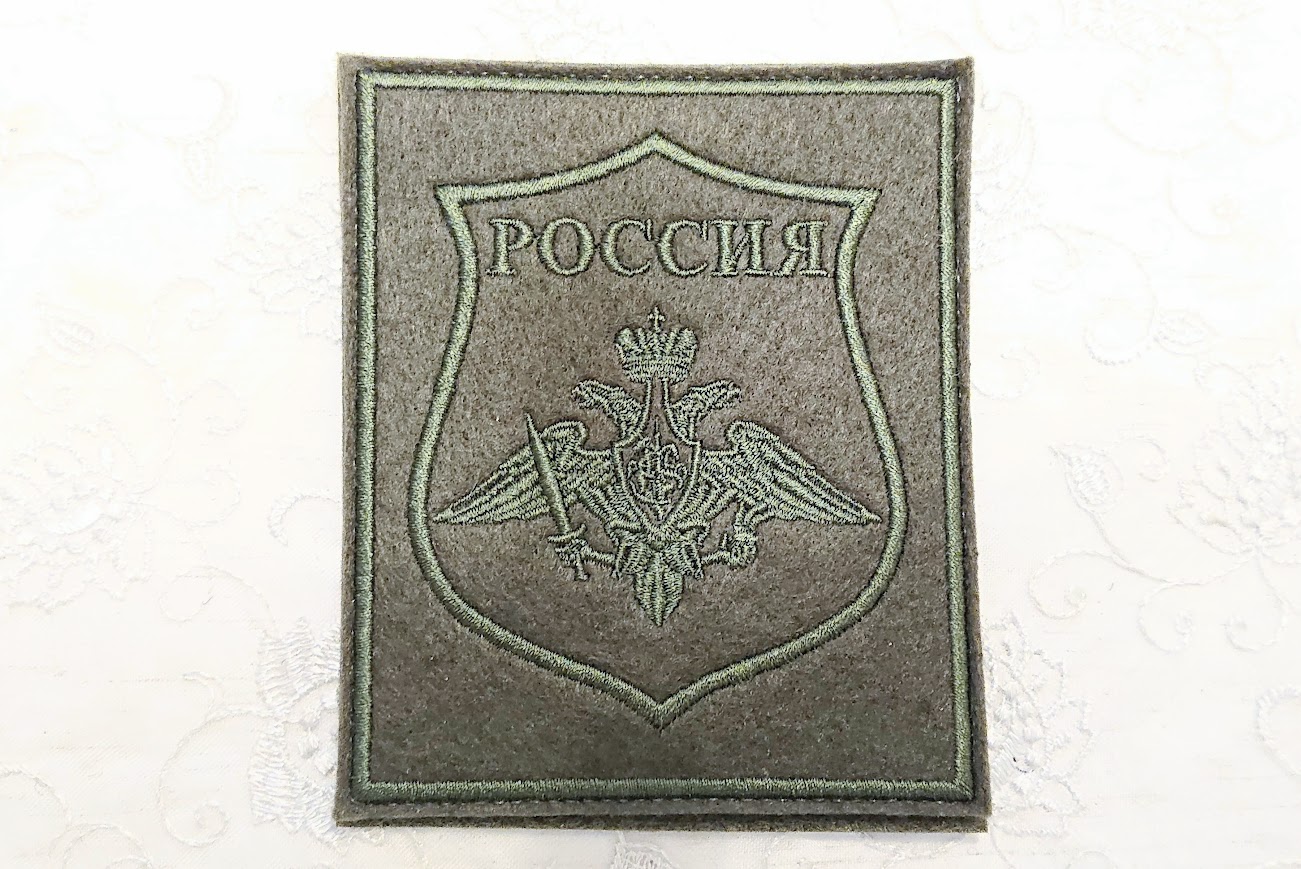 通常・式典用は所属がわかりやすいように、オリーブ色の土台にカラフルな糸で刺繍されています。ロシア国旗も上部に刺繍されています。