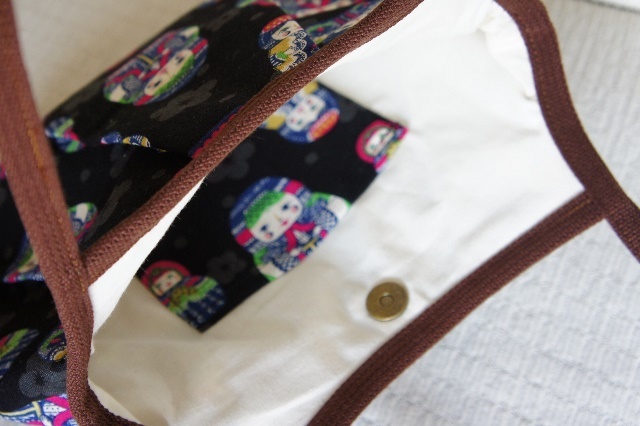 マトリョーシカ柄の柄の位置は、布地を使う場所によって写真とは違う場合がございます。ご了承ください。