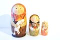 素朴な雰囲気が素敵なオリガ・ラバーナヴァ作 ウッドバーニング・マトリョーシカ 3ピース<白ネコとバラ>です。このマトリョーシカは電熱ペンで木を焦がしながら線を描く、ウッドバーニング技法を使っています。