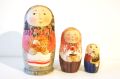 素朴な雰囲気が素敵なオリガ・ラバーナヴァ作 ウッドバーニング・マトリョーシカ 3ピース<眠りネコと赤い花>です。このマトリョーシカは電熱ペンで木を焦がしながら線を描く、ウッドバーニング技法を使っています。