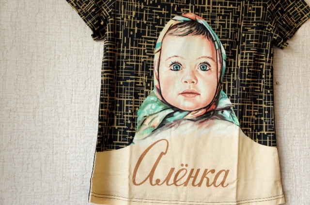 ソ連時代から人気のチョコレート、「アリョンカ」の包装紙の雰囲気そのままに、おしゃれなTシャツができました。これはアリョンカチョコレートの公式グッズですので、町の土産物屋のTシャツとは違います。