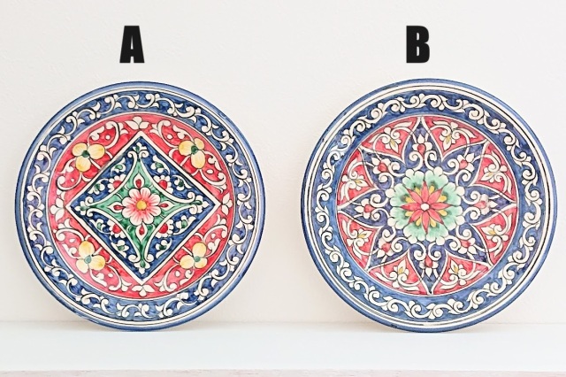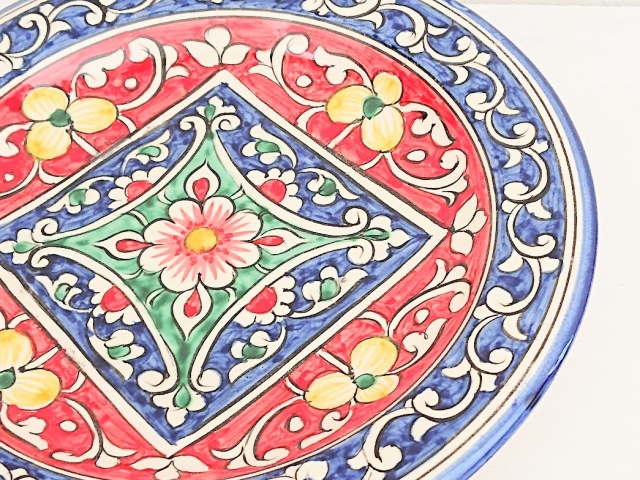 ひとつひとつハンドメイド・ハンドペイントされていて、色鮮やかな模様が目を引くお皿です。