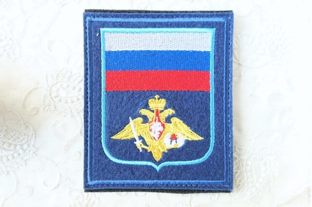 通常・式典用は所属がわかりやすいように、オリーブ色の土台にカラフルな糸で刺繍されています。ロシア国旗も上部に刺繍されています。