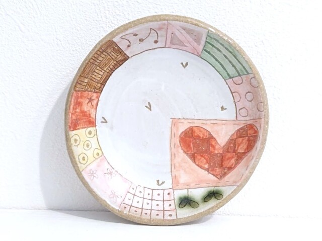 安藤喜代子 パッチワーク小皿<ピンク> φ11.5cm