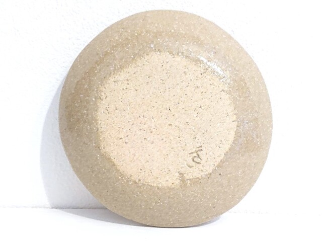 裏面は底の部分が素焼き、縁に釉薬がかかっています。安藤さんのサインも彫り込まれています。