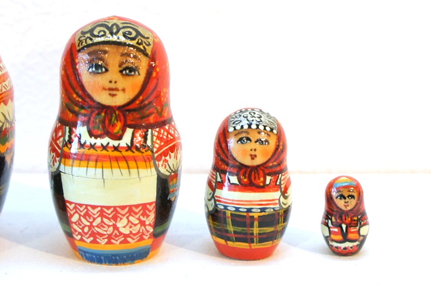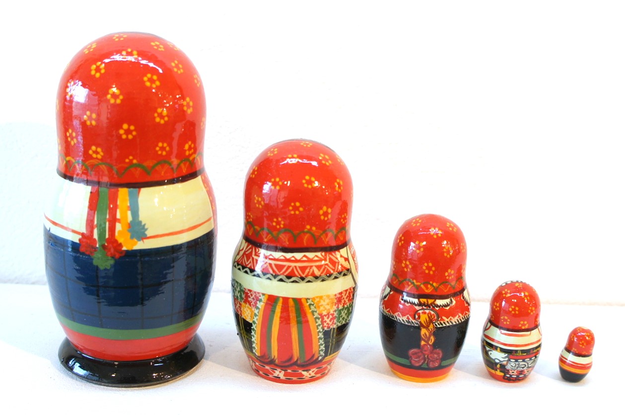 このマトリョーシカは赤系統の民族衣装が集めてあります。
