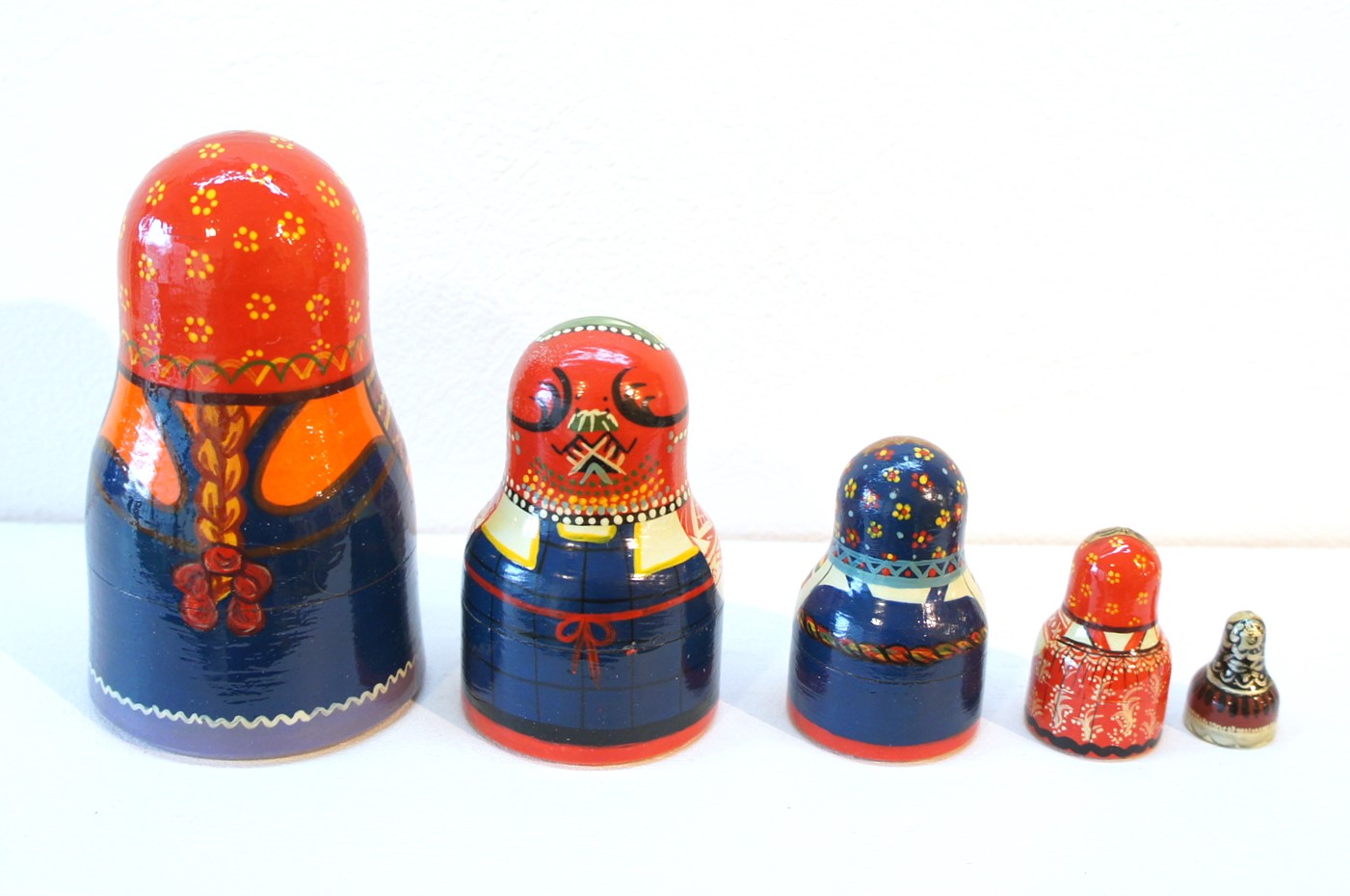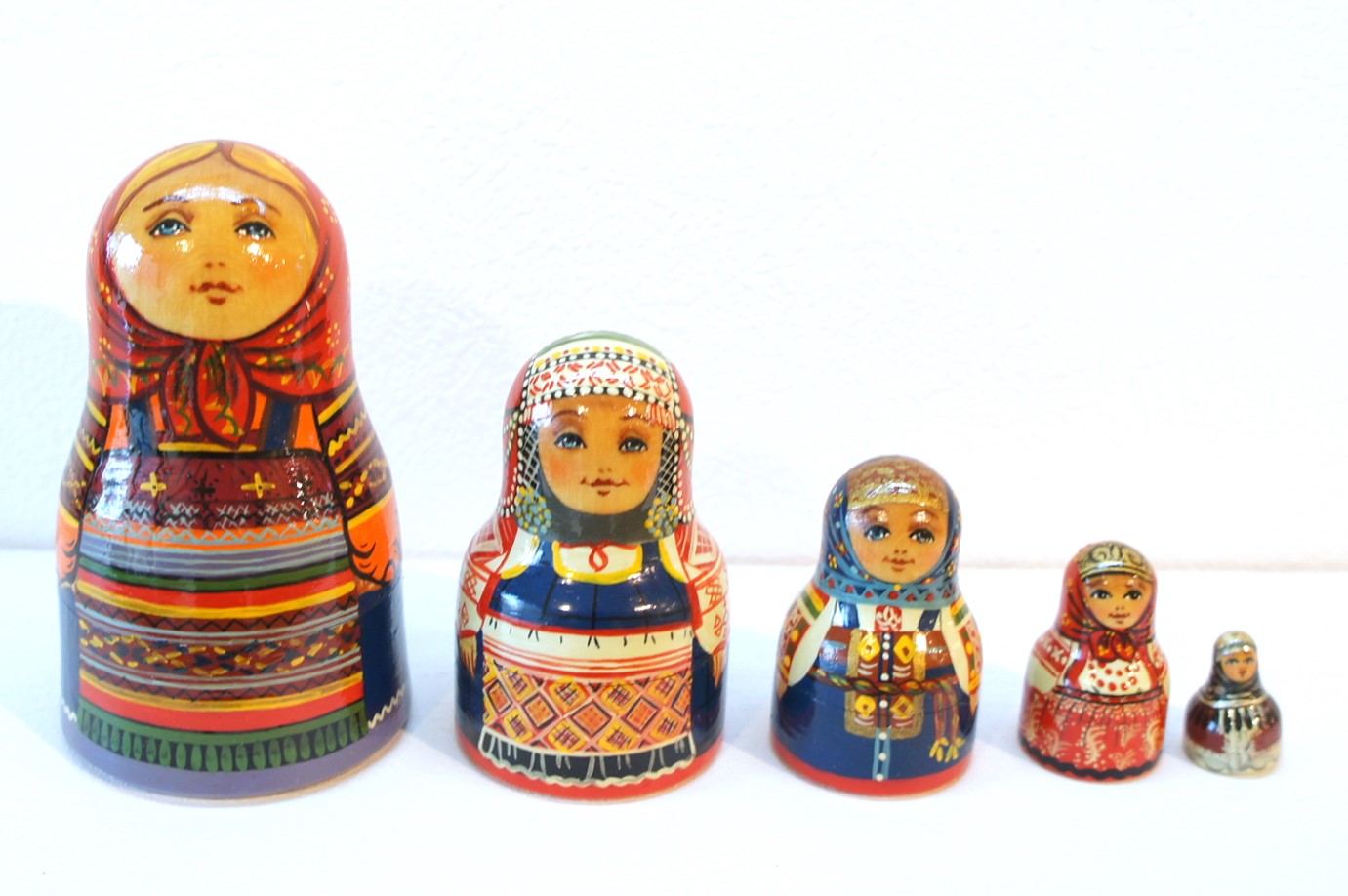 民族衣装ベル型マトリョーシカ 5ピース<モスクワ・スモレンスク・トヴェーリ・トゥーラ・クラスノヤルスク>です。