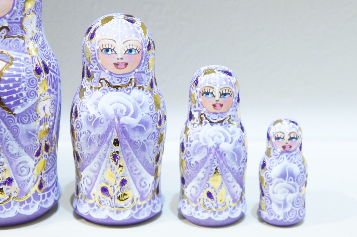 レースをかぶっているかのように、繊細に描かれた模様…その素晴らしさは感動モノですよ!神々しくて、思わず拝んでしまいそうなマトリョーシカです。