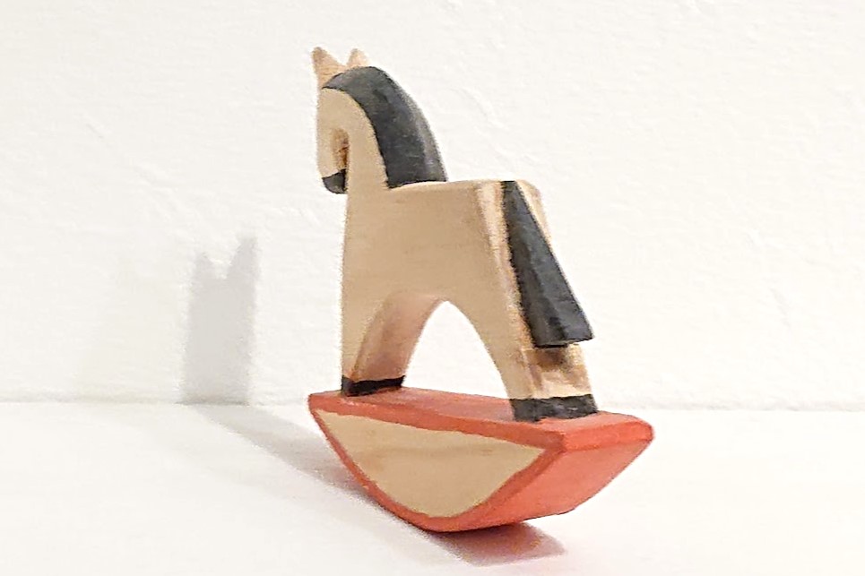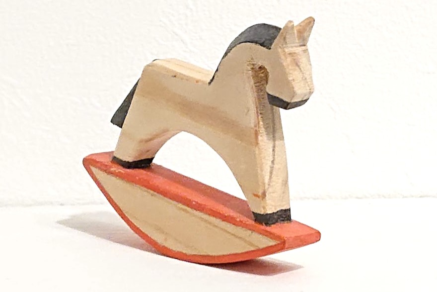赤で塗られ、素朴な雰囲気がステキ。木馬ですので、左右にゆらゆら揺れます。