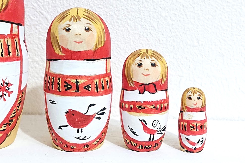 赤色は悪いことから身を守る力があると信じられてきました。今年のラッキーカラーでもあります。パワーあふれるマトリョーシカを飾れば、何か良いことがおきそうです!