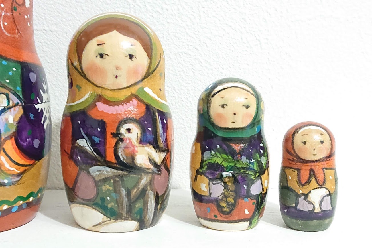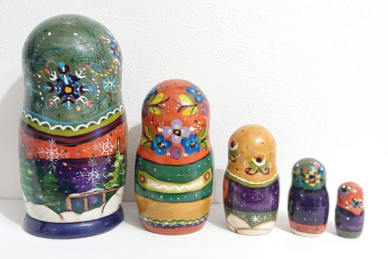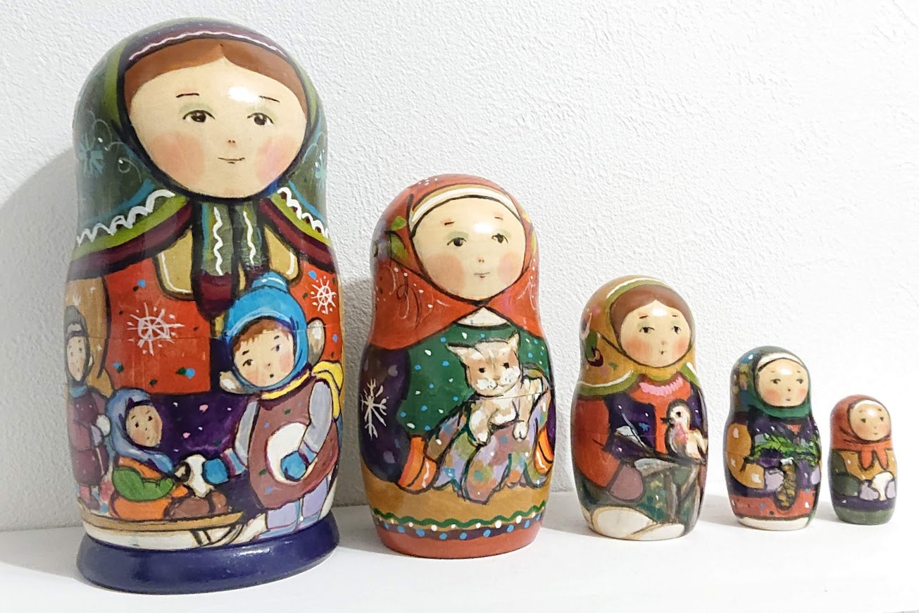 ペイントマトリョーシカ 5ピース <冬の女の子たち>です。すべて絵筆で描かれた
